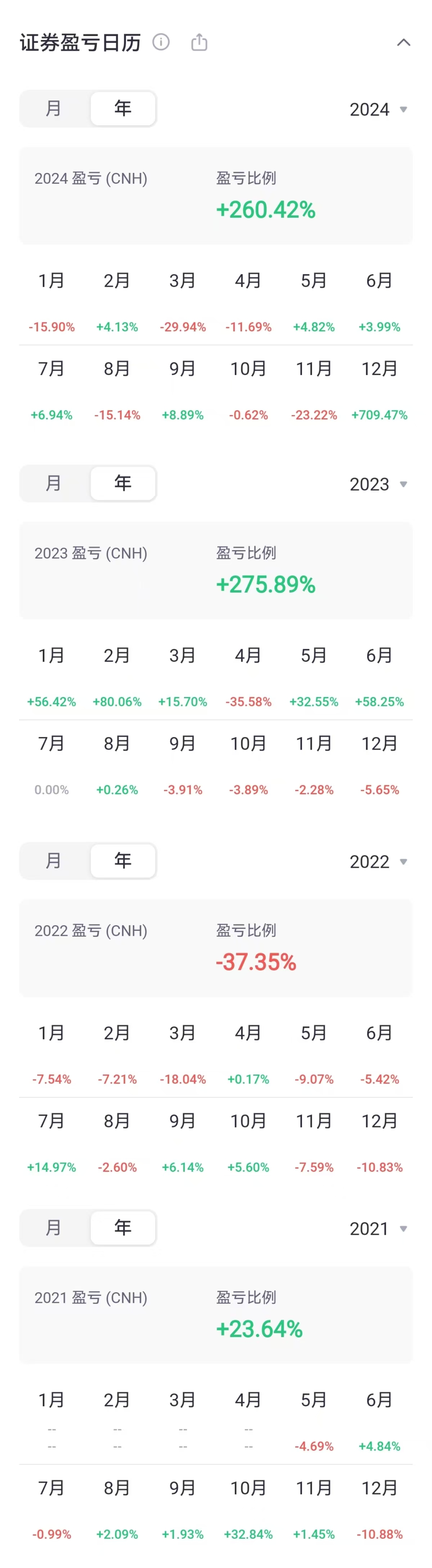 回顾2024年的操作,自己在投资心态上也经历了几个阶段的变迁。我在21年开户当年的5月份购入特斯拉正股,恰逢在一个回调期,随后在上升通道里一边止盈一边买入,当年账户盈利23%;而最后在高岗上买入的一笔在22年持有期持续亏损,当时全部持有正股被动等待上涨行情,全年亏损38%。