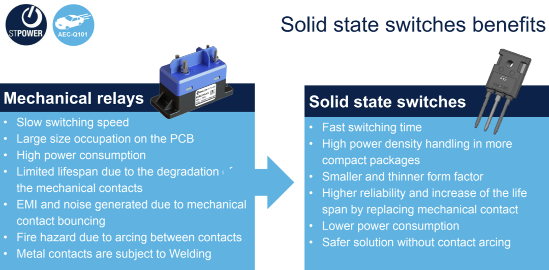 ● 小型化与高效性:ST的SCR解决方案在体积和功耗上显著优于传统继电器,适合高密度电子系统。