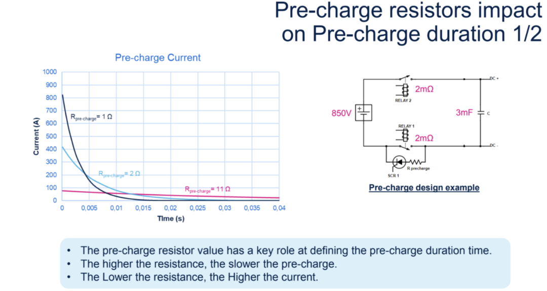 通过与电阻配合,在电池接入高压母线前限制涌入电流,保护电气系统。其快速的开关速度和高功率密度特性,允许使用更小尺寸的预充电电阻,在紧凑封装下实现高效能,如在一些示例电路中,SCR 能够在短时间内导通大电流完成预充电过程,且在充电完成后自动关断,提升系统可靠性与响应性。