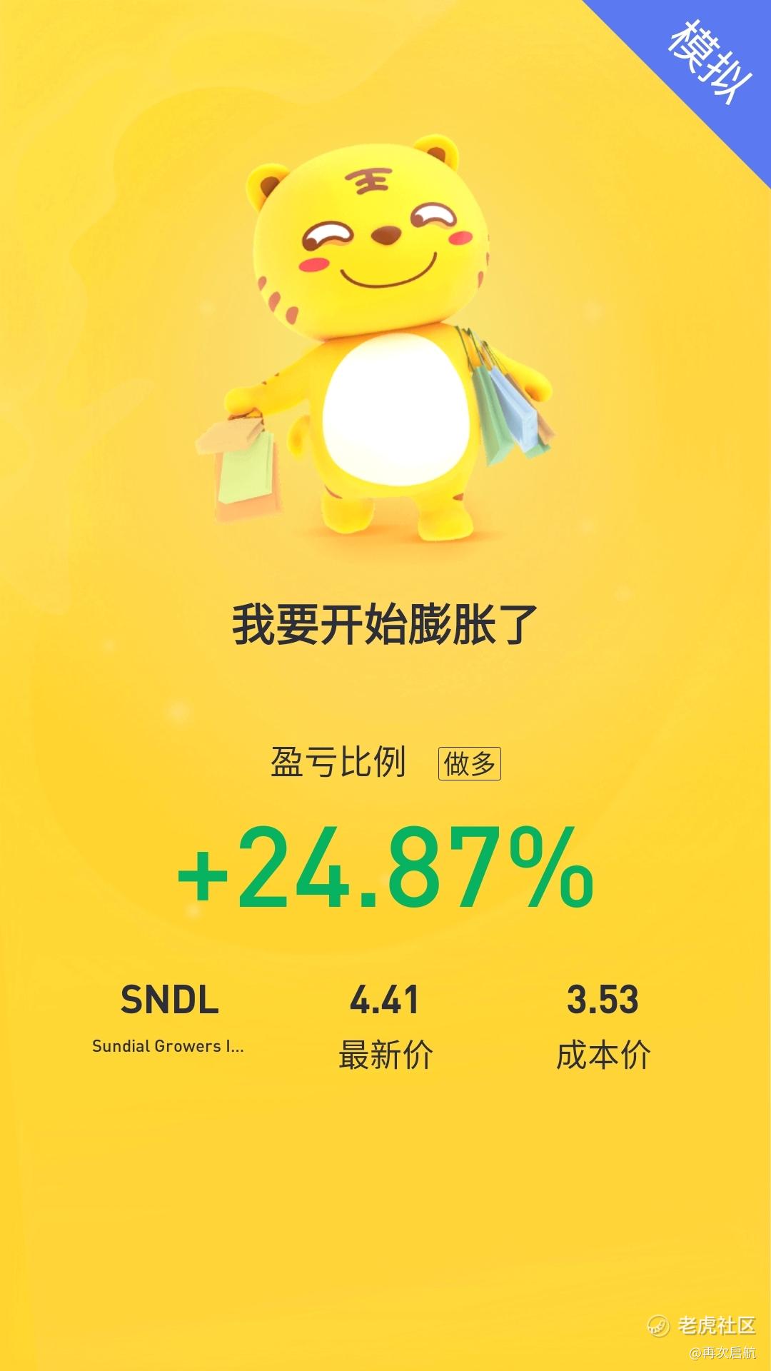 $Sundial Growers Inc.(SNDL)$一块多我就拿住了,现在涨这么多,却只能玩模拟股,难受😭😭