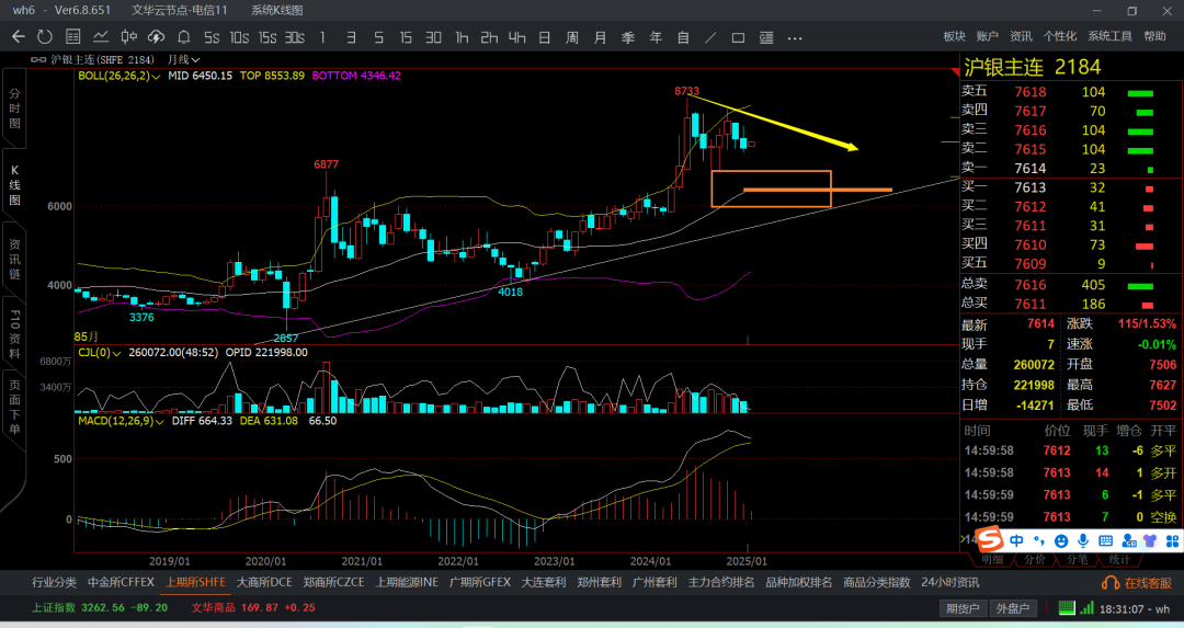 显而易见黄金好机会在2400-2200附近了,给到2000就送钱了,最次做多为主是2600附近,因为黄金不便宜了,所以只能网格做多,而不是一路死拿,除非给的位置非常好才能多贪一些,上方先看破2800,在到3000-3100附近,当然要是出现什么大危机3500-4000也不好说了。