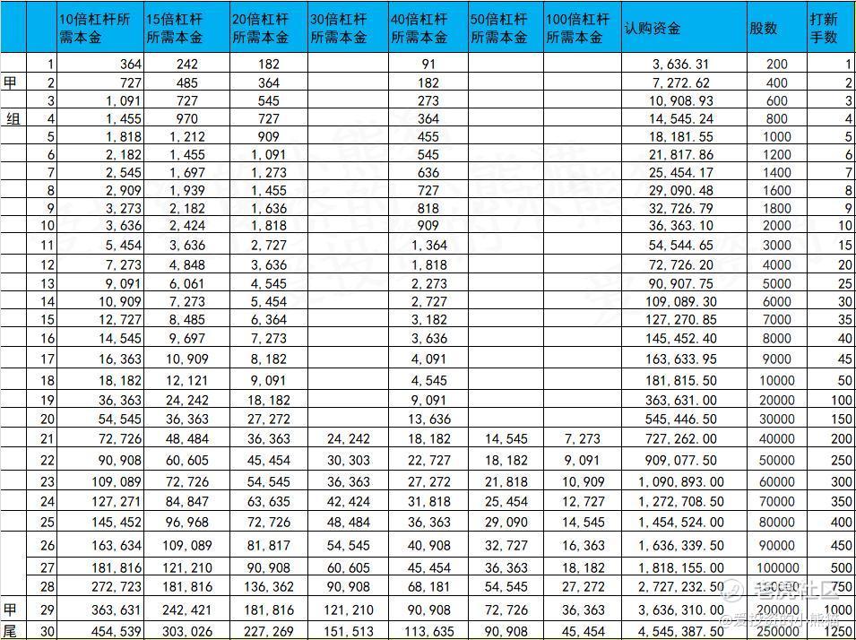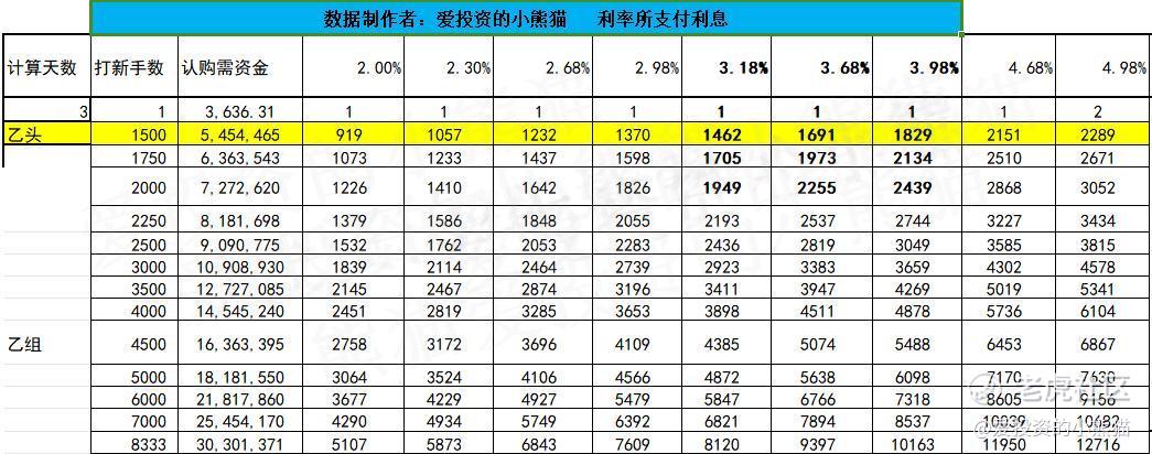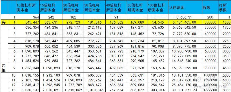 乙组头,这次是546万本金,乙组的各档融资所需要的本金还有融资金额对应如下表: