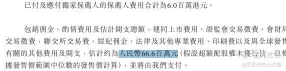 然后这个票招股书上按发售价15.00港元计算,公开的上市所有开支总额约为6660万港元,募资额约5.00亿港元,占比约13.32%,开支相比募资额算是一般化了。