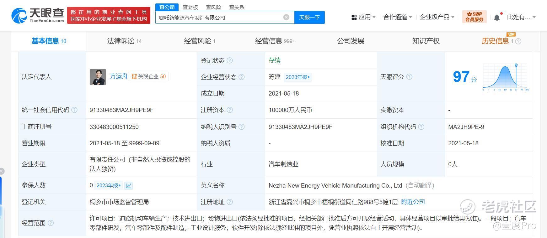 天眼查App显示,合众新能源汽车股份有限公司成立于2014年10月,法定代表人为方运舟,注册资本约28.4亿人民币,由南宁民生新能源产业投资合伙企业(有限合伙)、宜春市金合股权投资有限公司、桐乡众合新能源汽车产业投资合伙企业(有限合伙)等共同持股。