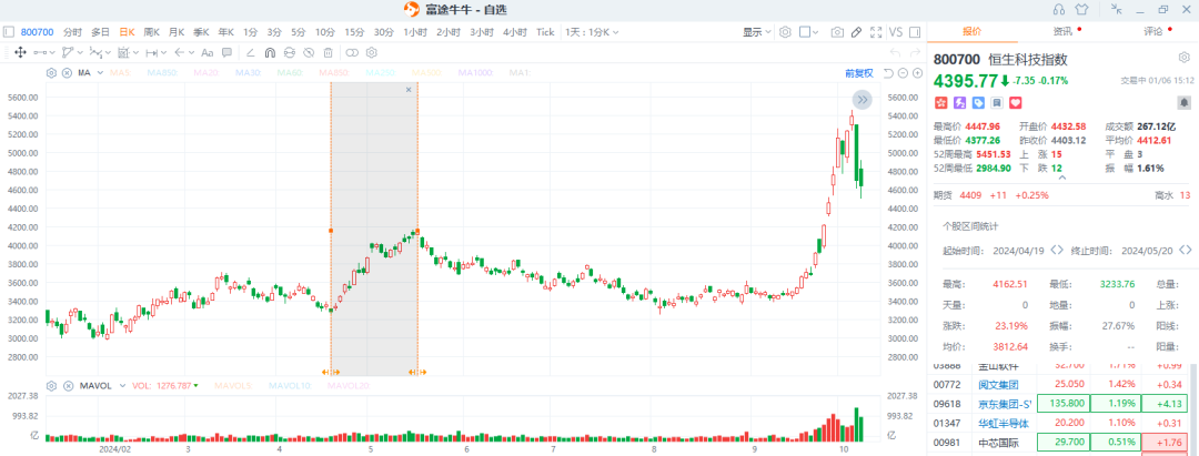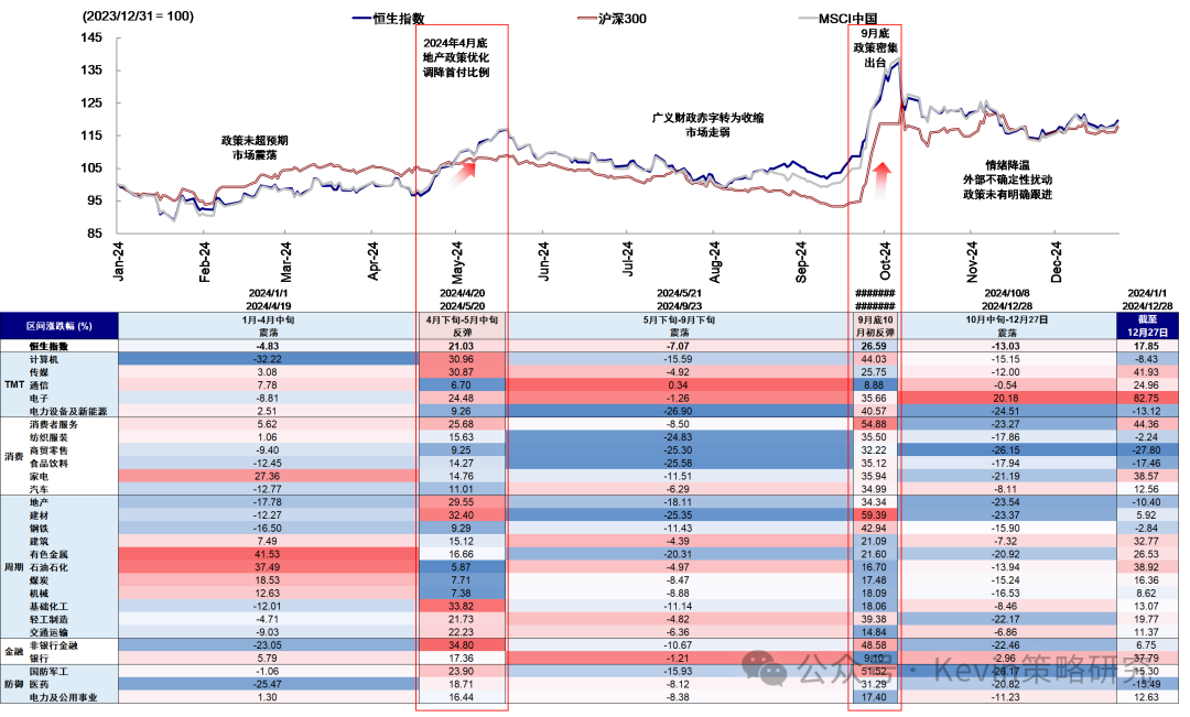 一是24年的4-5月份,4月下旬地产“组合拳”与超长债发型启动提振预期,情绪修复驱动港股快速反弹,恒生科技指数在当时大涨超20%。