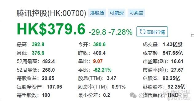 消息公布后引发了资本市场草木皆兵般的震荡,导致腾讯今天股价全日低开低走,大跌 7.28%。
