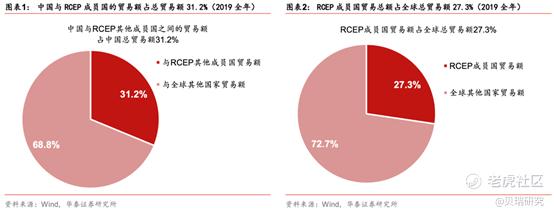 作为全球最大的自贸协定,覆盖了全球30%的人口(未来印度加入就占一半以上),区域内贸易额占全球贸易总额的27.3%,GDP占全球贸易总额的29.3%(北美占28%,欧盟占25%)。