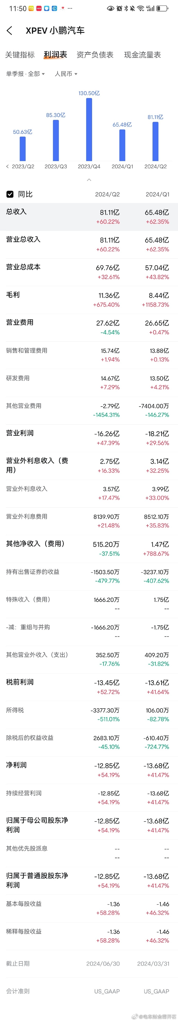 这样算起来,小鹏汽车2024年全年的净利润应该是在-47.64亿左右