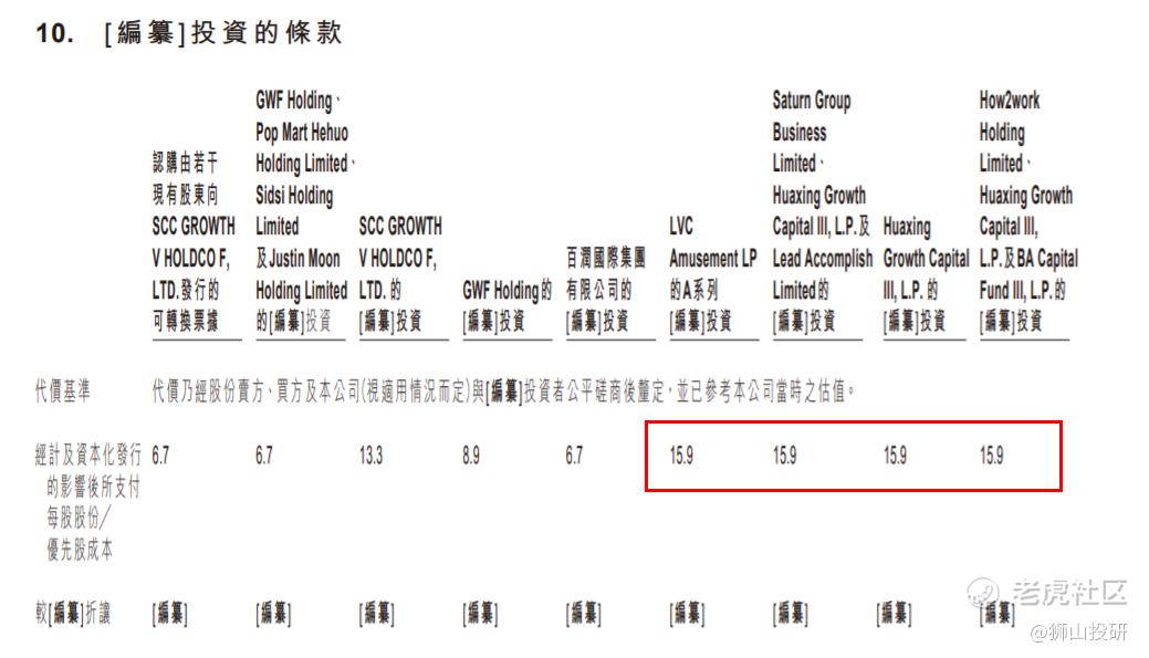 聆讯后招股书中披露的信息不够细致,目前看到的是2020年4月那一轮融资中,投资者得投资成本为15.9港元,但是目前不确定后续股本有没有发生变化,而招股价区间传闻是15.6-23.4亿港元,如果两个数据都为真,那么泡泡玛特似乎叫价并不离谱!
