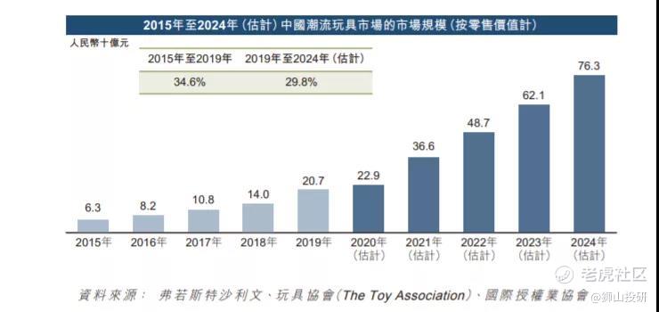 目前中国得潮流玩具市场规模大概为220亿人民币,而未来复合增速接近30%;