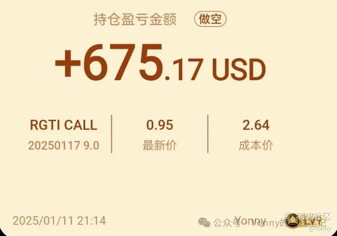 FFIE 我在高开低走的大阳线当天进的空单,RGTI 和QUBT也先后进了SELL CALL空单。这些空单都一度浮亏,当时也在群里和群友讨论到来着