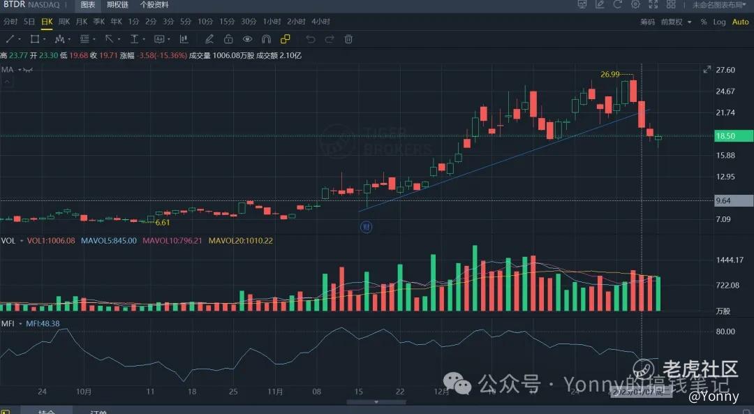 上周最惨的是这一单,着实驾驭不住这些波动大的小票,以后还是安心搞大饼etf完事了。。我在比特小鹿跌破上升趋势线的当天上半场就跑了,没想到下半夜杀得更厉害,一身冷汗啊… 现在这票还拿有一些长期的leap call,就2%仓位,无所谓了,权当交学费。