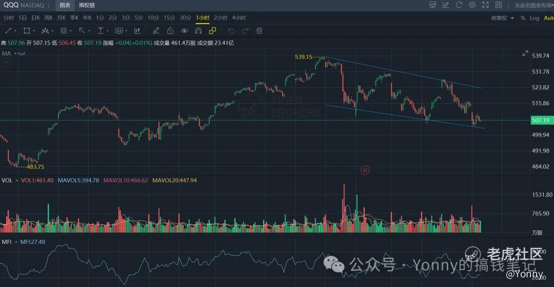 纳指重新跌回上升趋势线下方,形成lower high和lower low的形态,有些危险,所以上周我的主账户也清仓了纳指,科技股上仅保留微软、谷歌、亚马逊, 各10%左右的持仓,而其他账户的大部分底仓也换成了标普500,以降低波动风险。