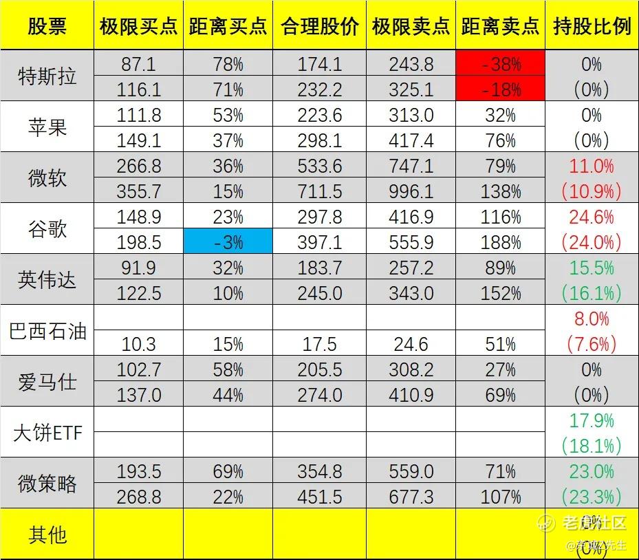 4、表格内相关数字,会随股价波动和我个人对公司的评估,不定期调整,请勿作为长期参考,切记巴菲特都经常判断失误,更何况我等凡人。