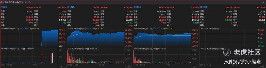 $布鲁可(00325)$ 公配5999.96倍,成为港股历史上第三名超购倍数最多新股,低于第一名当时超购6288倍的毛记葵涌 (01716)和第二名超购6083.63倍的草姬集团 (02593.HK) !暗盘大涨74.48%,上市首日高开81.61%,集合竞价几乎是最高点!上冲到109.90港元后回落,到尾盘几乎是最低点收盘。