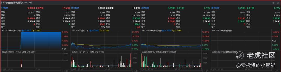 纽曼思(02530.HK)辉立暗盘以0.80港元平开,立马上冲到最高点1.00港元后震荡下行,在最低点0.73港元止跌反弹,尾盘以0.80港元报收,涨幅0%,振幅33.75%。