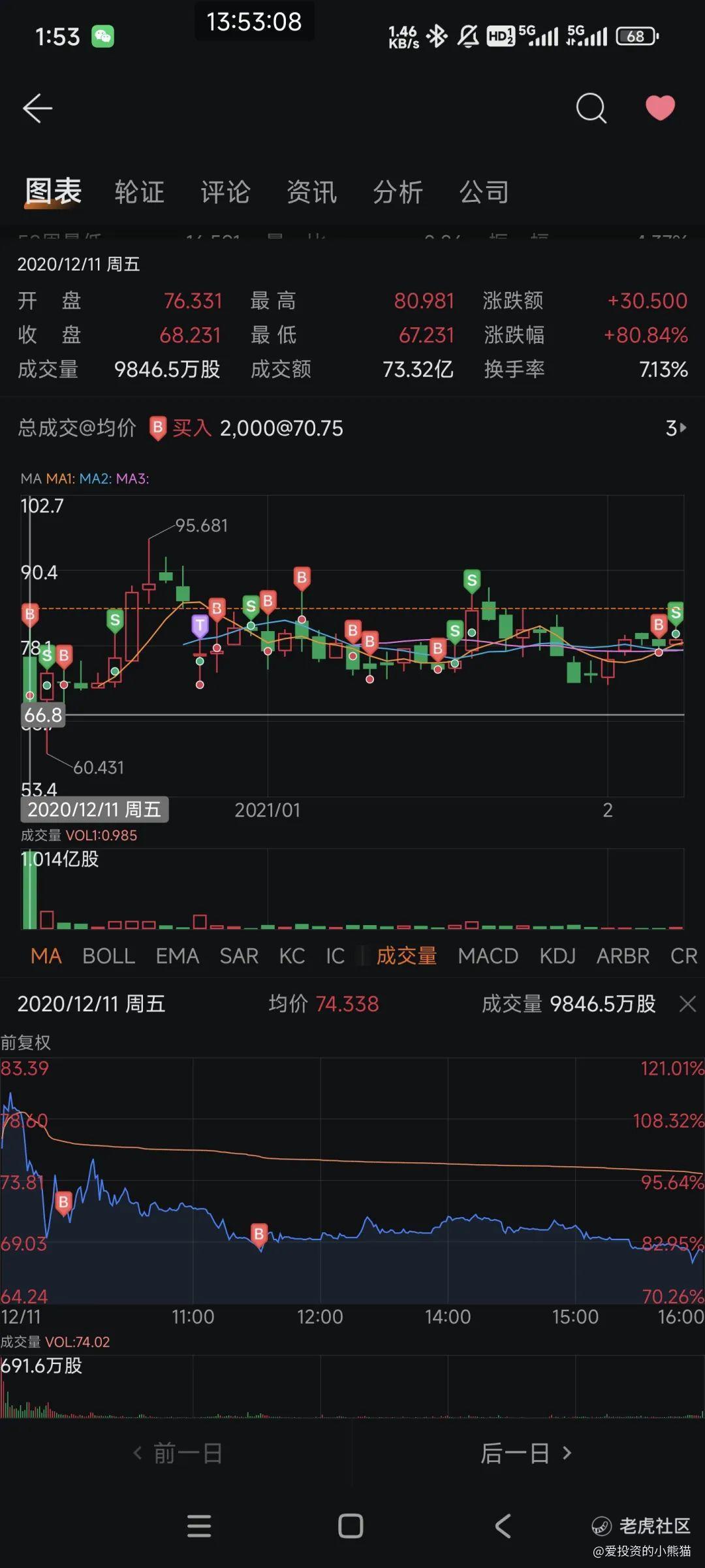 我自己这次只有中签三十几手布鲁克,只留了一手留下纪念了,其他的开盘几乎全跑了,开盘卖利润有近15,000,收盘卖利润只剩不到7500了,这利润整整差了一倍。