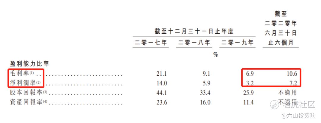 净利率更低,2019年为3.2%,2020年上半年为7.2%。
