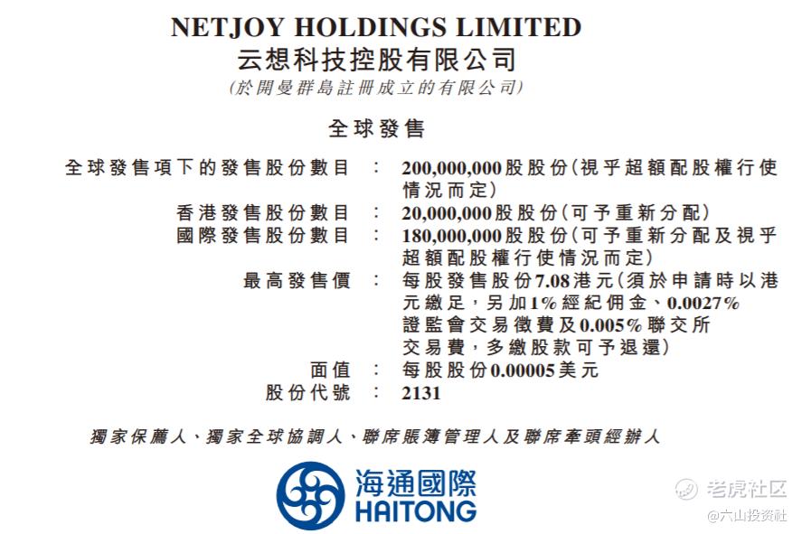 每股发行价5.56-7.08港元,入场费7151.34港元。发行后市值约44.48-56.64亿港元。