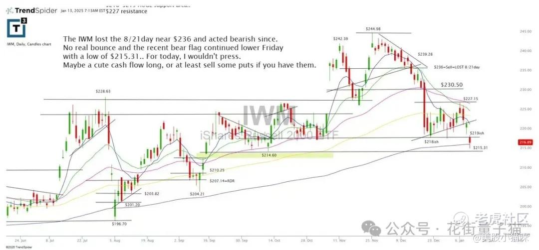 IWM 在接近 236 美元的 8/21 日线失守后一直呈现看跌趋势。