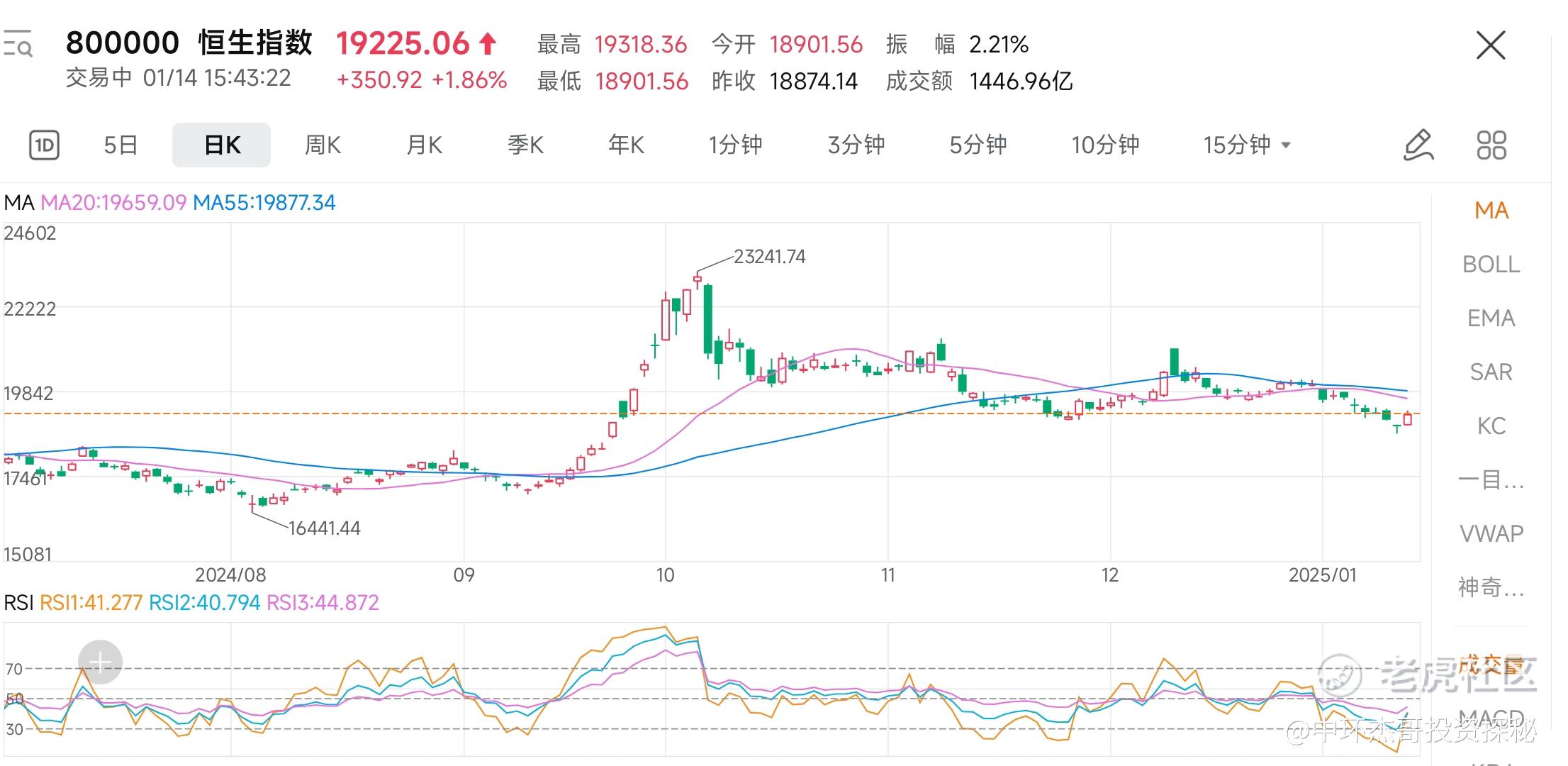 2, 从K线上看,行走5浪,形态完整,幅度不大,调整时间也比较充分,算是比较健康的调整形态了,当下这个交易日,如果继续大跌就有开启另外一波调整的可能性,也将走出来新的调整结构,那么时间和空间都会延宕更久,然而,在外围消息明朗化之后,大盘坚定回升,标普小涨,K线中阳,纳指小跌,但K线大阳,等待PPI,CPI尘埃落定以及川普登基的政策落地,行情将选出方向,也更容易走出趋势性行情。