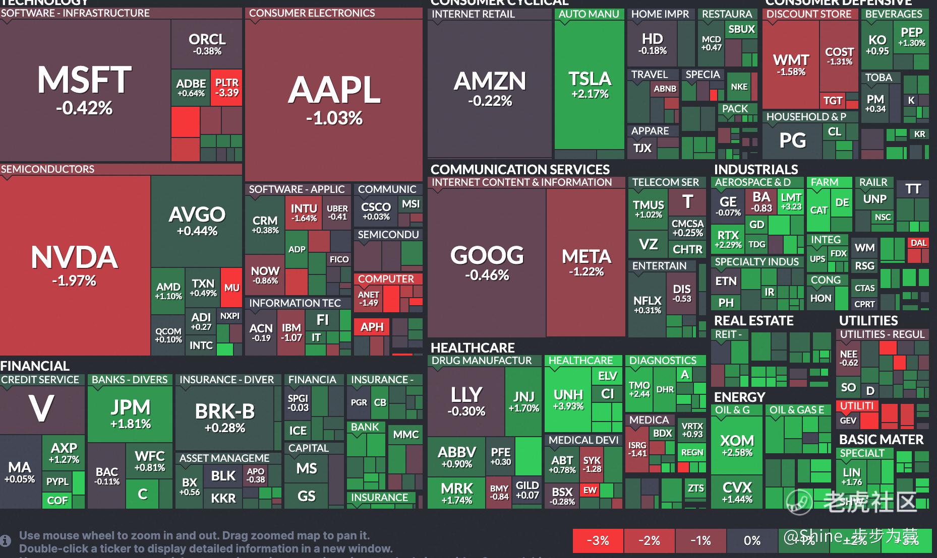 从板块来看, 虽然尾盘TSLA猛拉,但是整体大科技走的并不好。如果去看热力图的话, 会发现当前的大宗商品走势非常不错, 不论是能源、化工等等。大宗商品基本上都是周期股, 从上一轮牛市的2022到现在已经调整好几年了。看整体板块都是筑底的一个走势,可能会迎来反转。