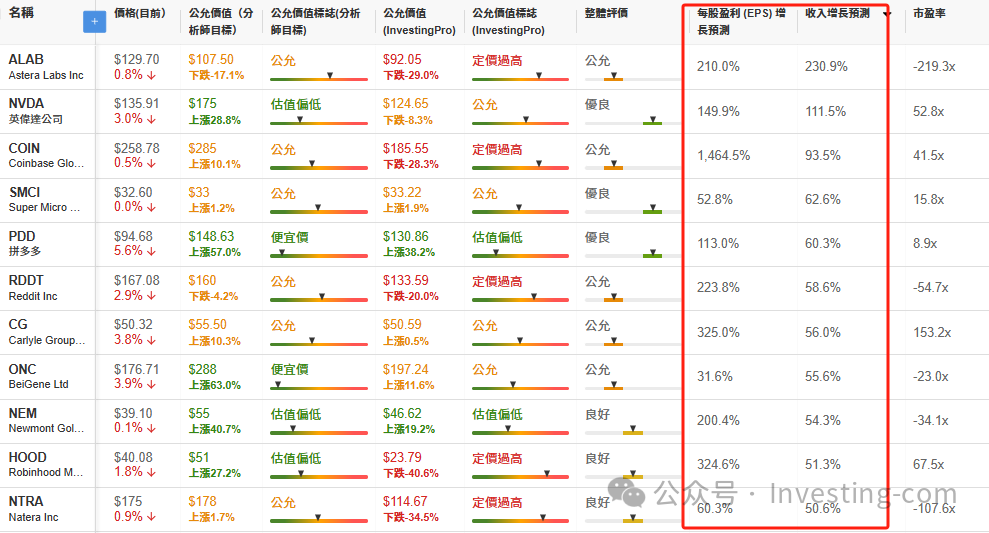 笔者使用InvestingPro股票筛选器找出了分析师预计每股收益和营收增速均有望超过25%的公司。
