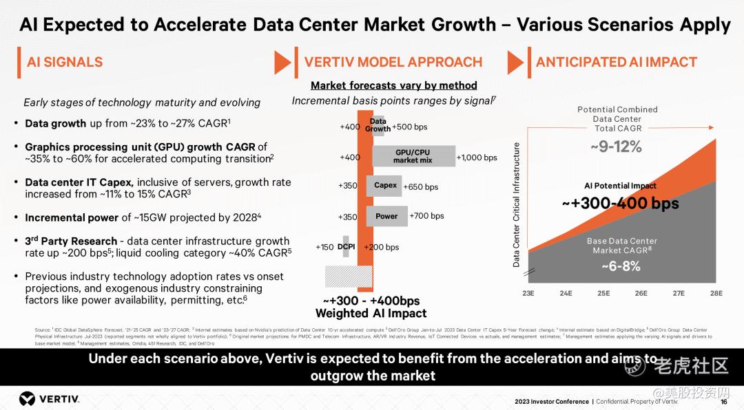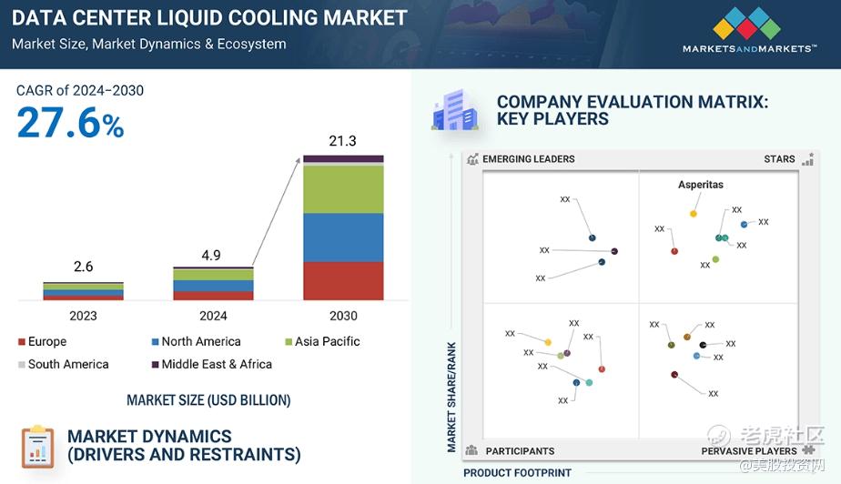 液体冷却技术正在加速普及。尽管目前只有20%的数据中心采用液体冷却,但预计未来这一比例将在十年内攀升至60%-65%。根据行业预测,全球液体冷却市场将在2030年实现27.6%的年复合增长率。VRT作为这一领域的领先企业,无疑将在这场转型中占据最大的市场份额。