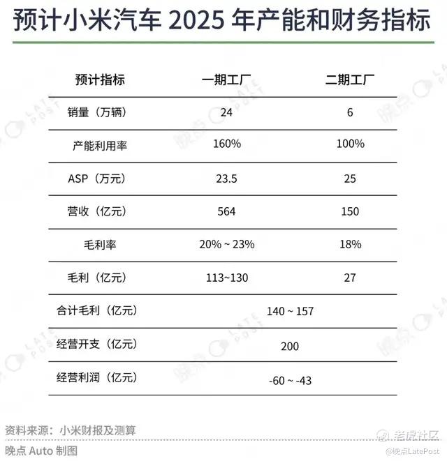 再结合小米汽车 2025 年 30 万辆的销量目标,意味着小米一期工厂的产量要达到 24 万辆,全年产能利用率将达到 160%。