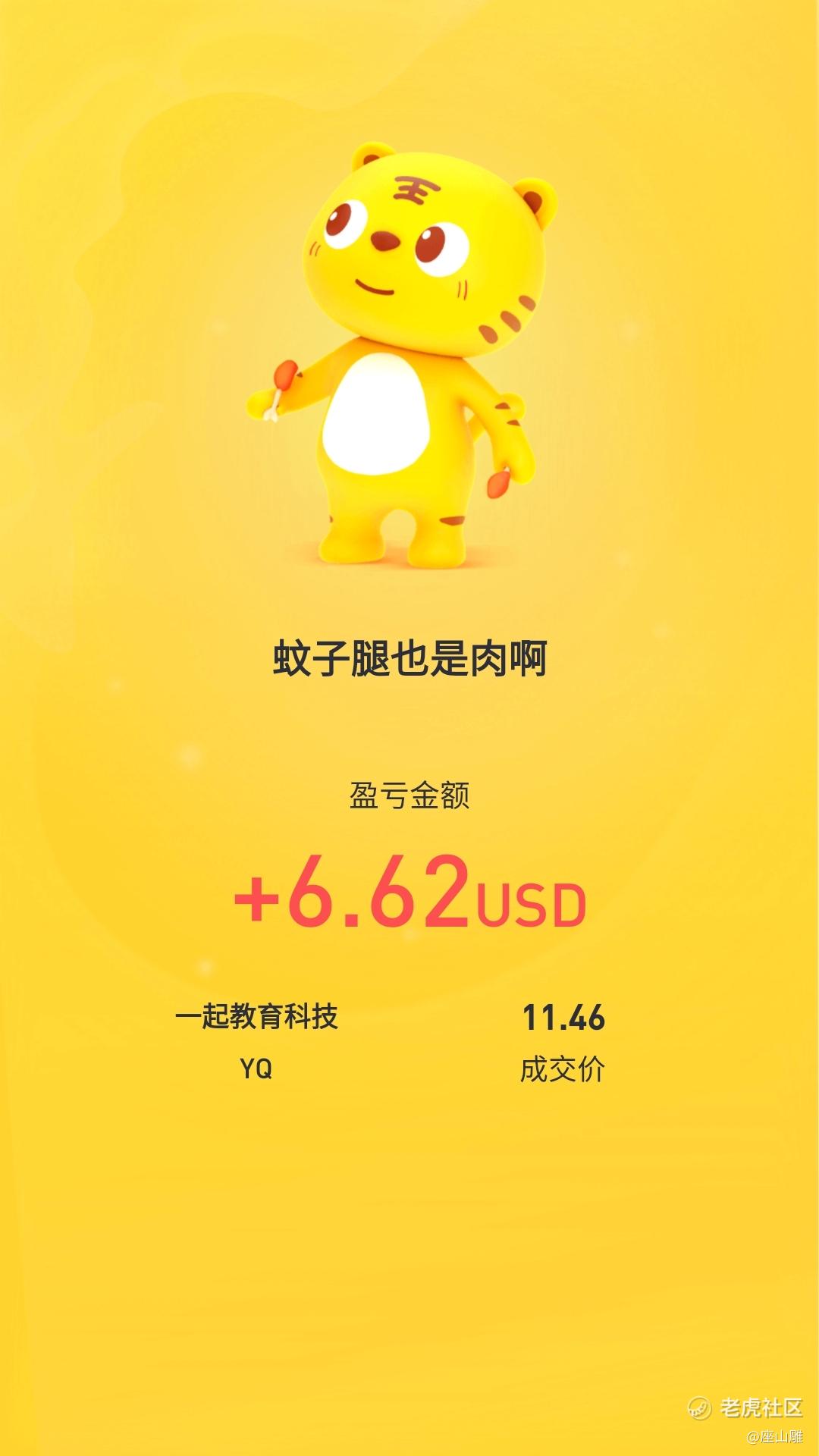 $一起教育科技(YQ)$我申购他中了十股。开盘当天就卖了。才挣了6.62美元。不知道中签的虎友们卖了没有?讨论一下。现在该不该持股?