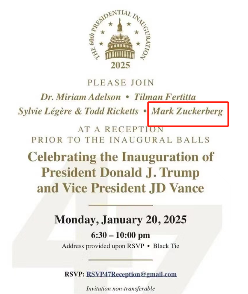 - AliceSam·2025-01-17特朗普就职典礼前的招待会,扎克伯格积极加入了联合主持人队列点赞举报