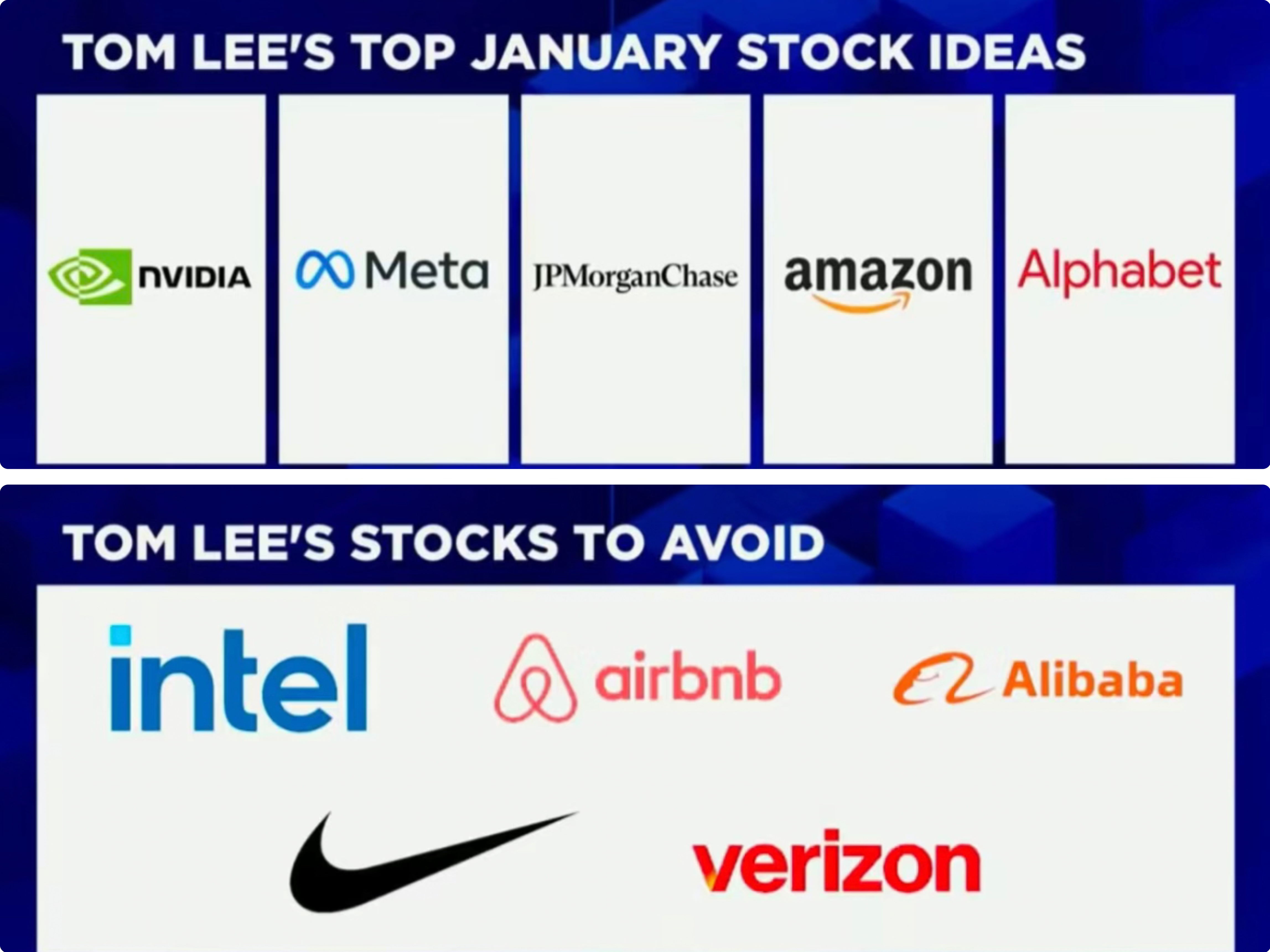 今天盘后,Fundstrat策略师Tom Lee给出了自己一月的操作策略(只是1月),看好&看衰的股票如图,仅供参考:[吃瓜]