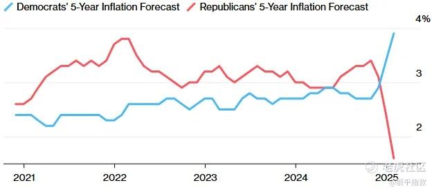 例如,和1.0时代相比,特朗普2.0时代美国政治的撕裂更加严重,即便是针对同一件事——通胀(有着严格事实判断依据),两党之间也有着巨大的分歧。