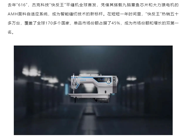 杰克股份目前的核心产品,主要就是在最高端的电脑式缝纫机上迭代技术,日系的优势是明显,中国在电机方面是占不到便宜,但是,日本制造也不是十全十美,他们错失了互联网产业,所以在产品软硬结合不行,尤其在软件端薄弱。其次,芯片设备制造还行,但芯片设计也不太行。所以基于自动化的方向,杰克股份的创新产品逐渐跑赢。