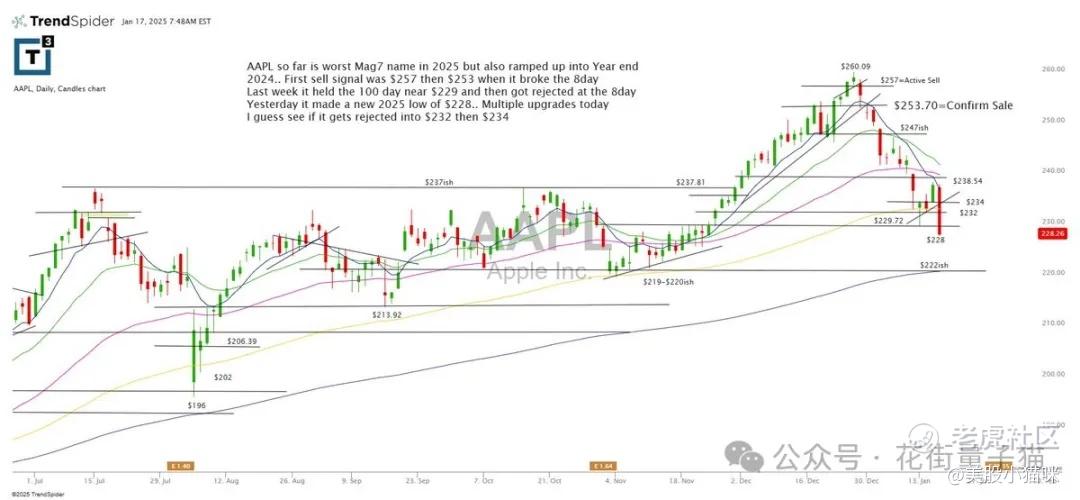 亚马逊的强势如同“Mag7”中的大多数股票,昨日遭遇抛售。今天看看它是否能更好地持稳。昨日的低点是220美元左右,关键阻力位在224美元左右。