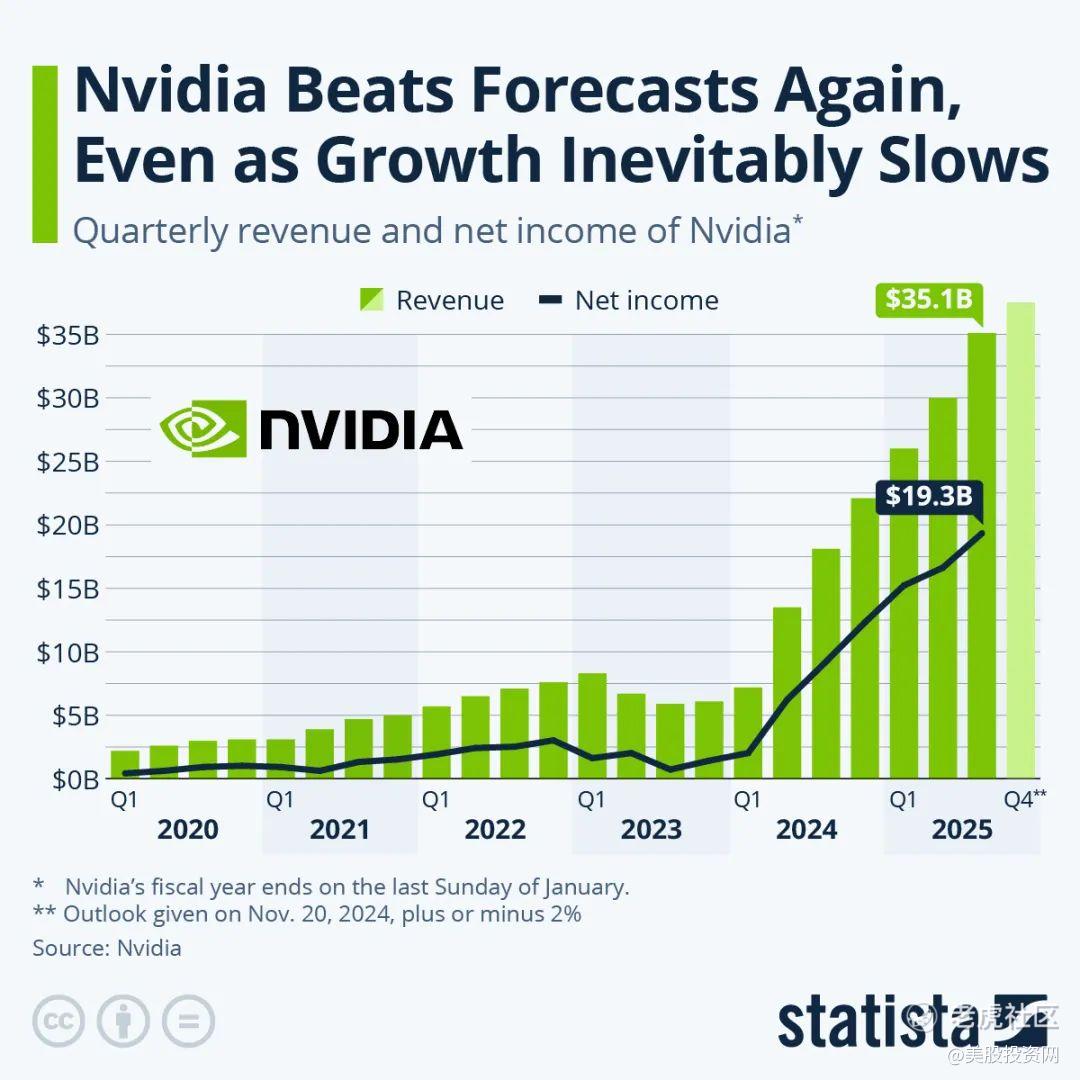 $英伟达(NVDA)$ 去年第三季度营收高达350亿美元,而AMD仅为68亿美元,差距接近5倍。