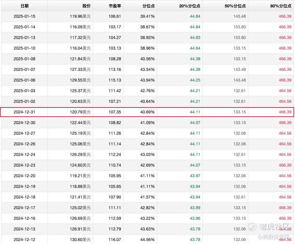 截至2024年底,AMD的市盈率高达107倍,股价为120.79美元,虽然处于历史估值分位点的40.69%,但这一数字依然反映了市场对AMD未来增长的极高期待。然而,这种高估值也意味着,公司必须持续交出超预期的增长成绩,稍有不及,投资者的信心便会迅速动摇导致股价崩塌。