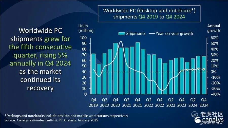 客户端业务在2024年增长48.6%,这一增幅看似亮眼,但主要得益于市场份额提升,而非全球PC市场的全面复苏。事实上,PC市场复苏进程缓慢,甚至被推迟到了2025年,这让AMD在这一领域的增长显得难以为继。对于一家依赖多元化业务支撑的公司来说,单一板块的低迷直接拖累了整体业绩表现,进一步打击了投资者的信心。