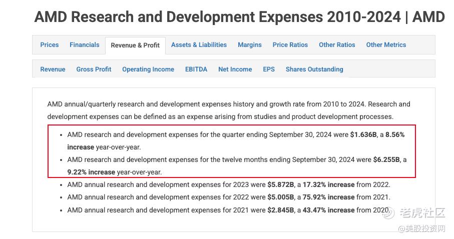 AMD与英伟达在研发投入上的差距更揭示了两者的竞争格局。