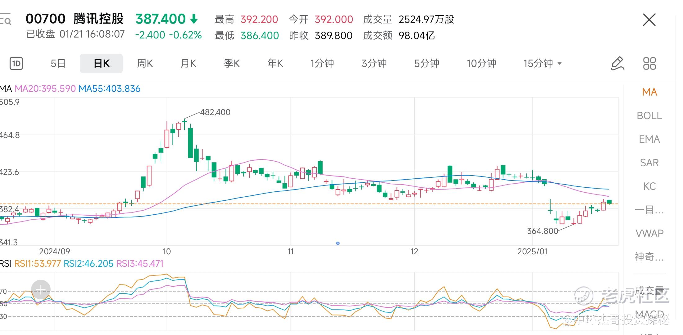 腾讯今天没有乘胜追击,开盘宽幅震荡,随后低位收盘,在大盘中阳的情况下,小阴收盘,虽然,放在平时的话,这个节奏还算正常,但是,放在大跌破位的环境下,哪怕是误伤,对人们心理的震慑还是有较大影响的。有几个观察点可以作为参考,第一,是否能超预期突破上面的20天线和55天线,这是内生动力,如有,就不得了了,第二,能否有被美国解除制裁的消息,如有,必然扭转大势,只是,这个时间点需要半年一年后了,第三,经济基本面有大的好转,否则,腾讯最近还是小心为妙。