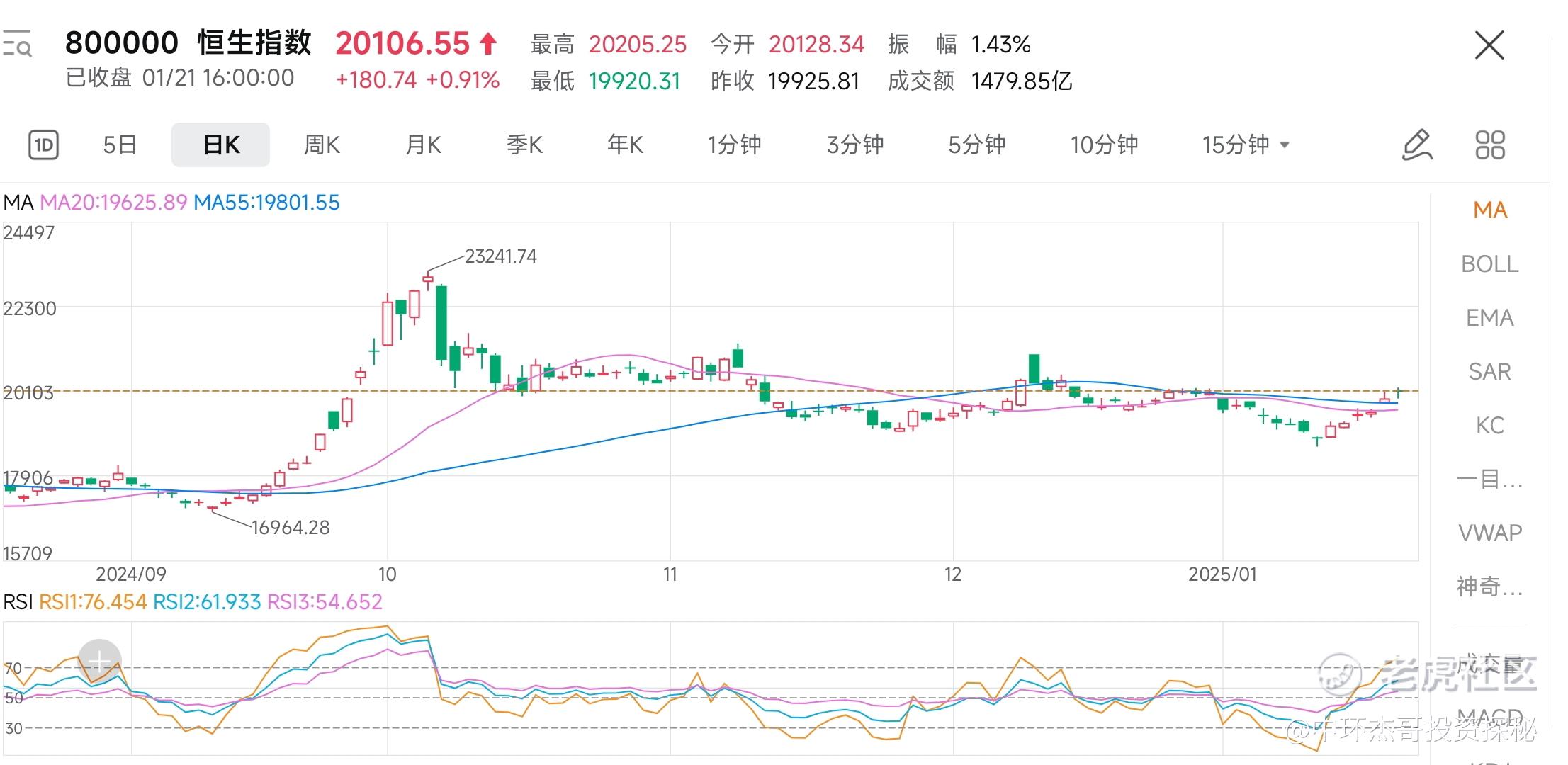 从市场环境看,毫无疑问,懂王的一通操作,才是市场最大的影响因素,港股也不例外,A股也会受到影响。目前收到的消息看,特朗普明显是先易后难,先针对身边小兄弟,加拿大和墨西哥动手,然后再和我们谈判和交锋,所以,没有消息就是好消息,这是港股上行的最大动力。看看A股,最近反弹还是相对疲弱的,哪怕是四季度超预期依然没有太大的拉动,所以,A股还是在意本身的基本面,特别是房地产。而港股主要是受中美整体的政策走向所牵引。