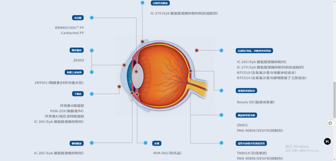公司已建立起由创新药及仿制药组成的产品研发组合,涵盖影响眼前节及眼后节的6种主要眼科适应症,包括干眼症、近视、老花眼、湿性老年黄斑部病变、糖尿病黄斑水肿及青光眼。