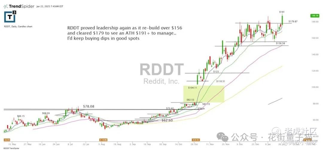 RDDT再次证明其领导力,在156美元以上重新建立基础并突破179美元,目前目标看到191美元以上。建议在合适的点位继续买入回调。