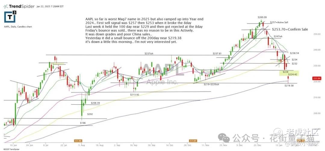 苹果是 2025 年表现最差的 Mag7 股之一,但去年年底有所反弹。$253 的初始卖出信号仍然有效,建议投资者观望,等待更多信号。