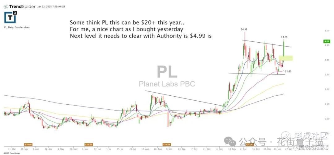 一些人认为PL今年可能会超过20美元。对我来说,昨天买入后是一张漂亮的图表。下一个需要权威突破的水平是4.99美元。