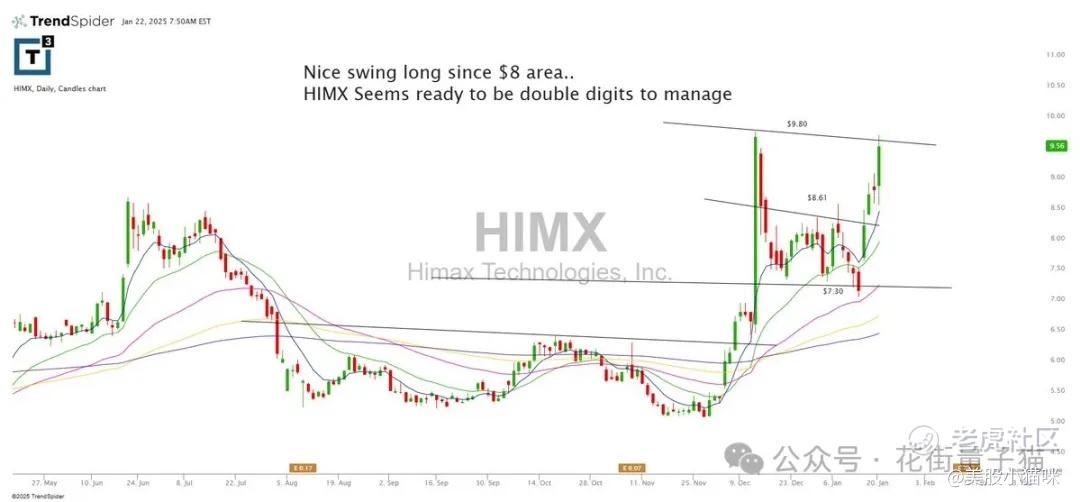 HIMX自8美元区域以来表现良好,似乎准备突破两位数,目前需要关注管理策略。