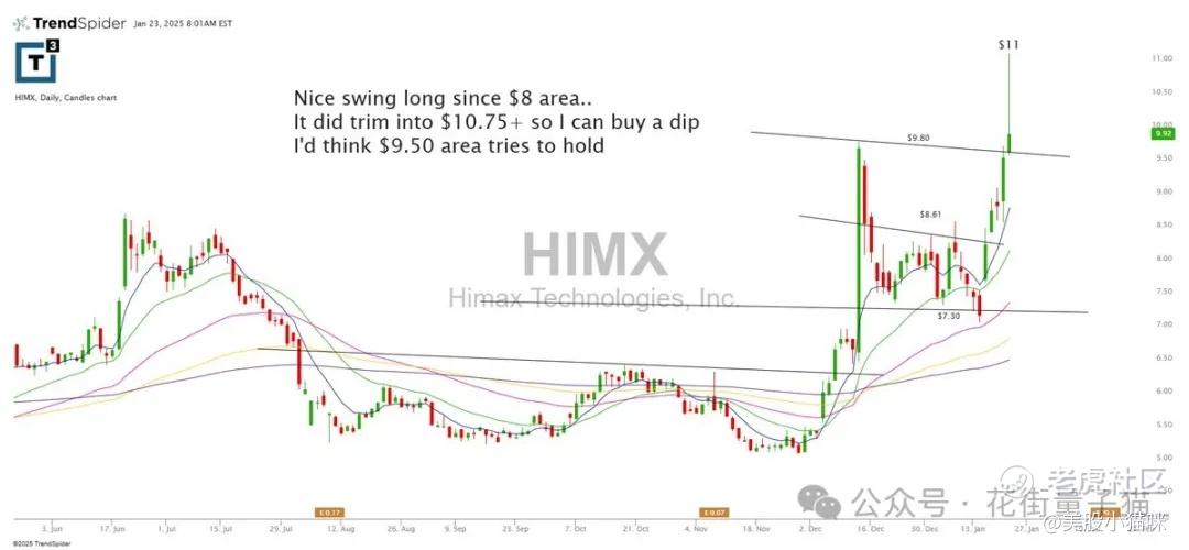 自 $8 区域以来形成了不错的波段上涨。我在 $10.75+ 减仓后计划在回调时买入。我认为 $9.50 区域可能会形成支撑。