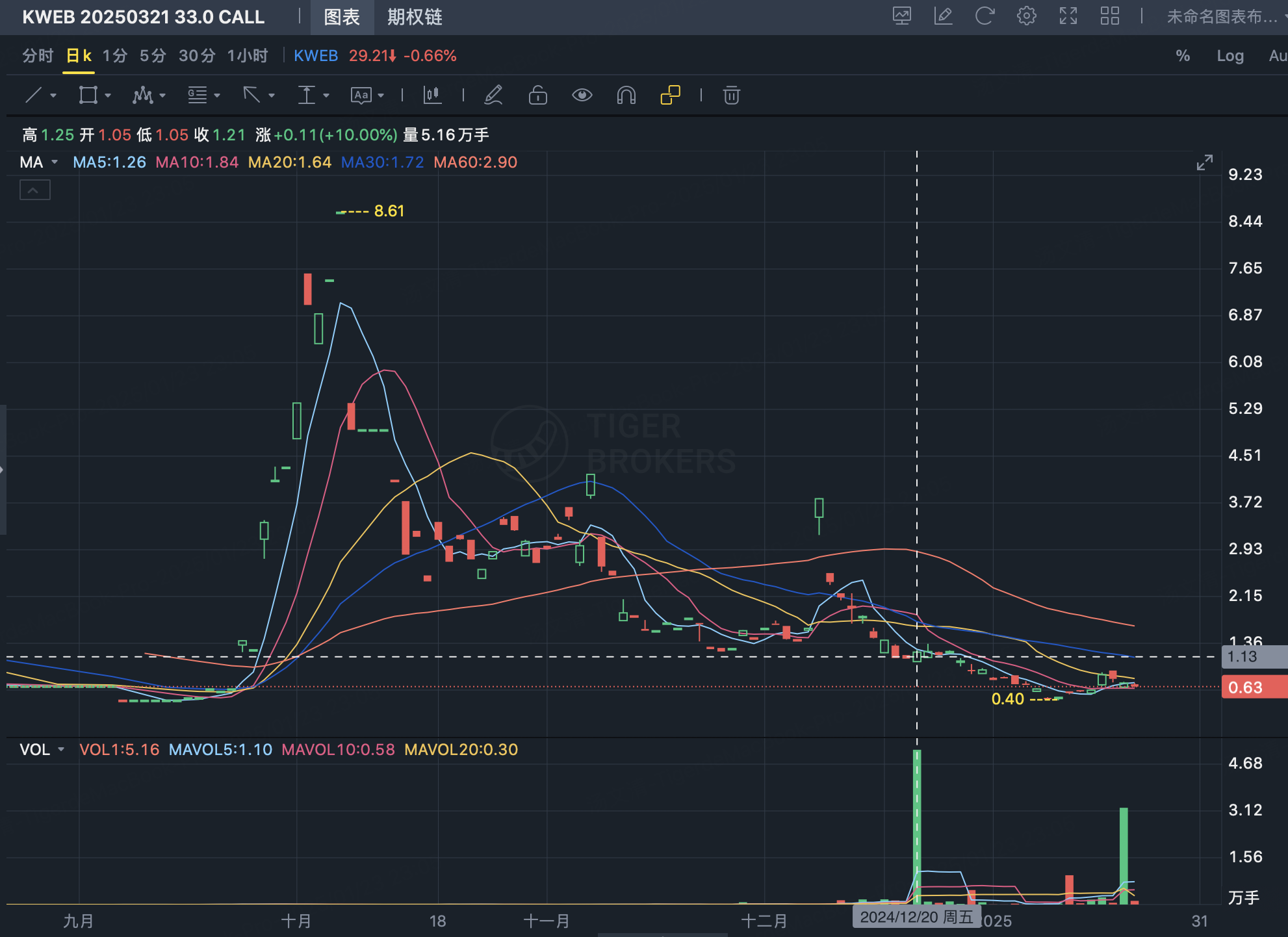 买入 $KWEB 20250321 33.0 CALL$ ,成交量3.2万手
