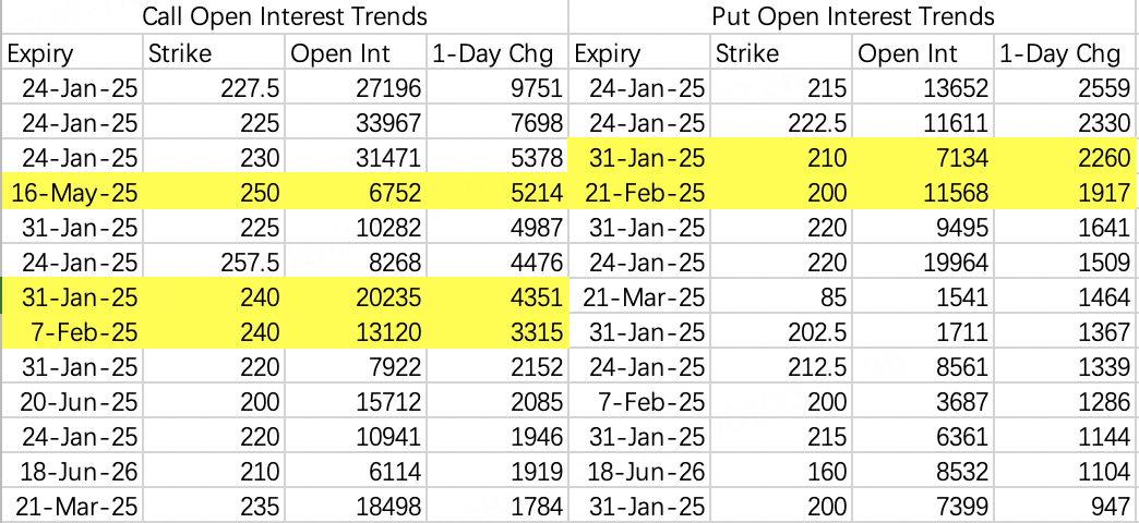 看涨开仓强于看跌,我把sell put200平了换成激进一点的平价225sell put $AAPL 20250131 225.0 PUT$ .
