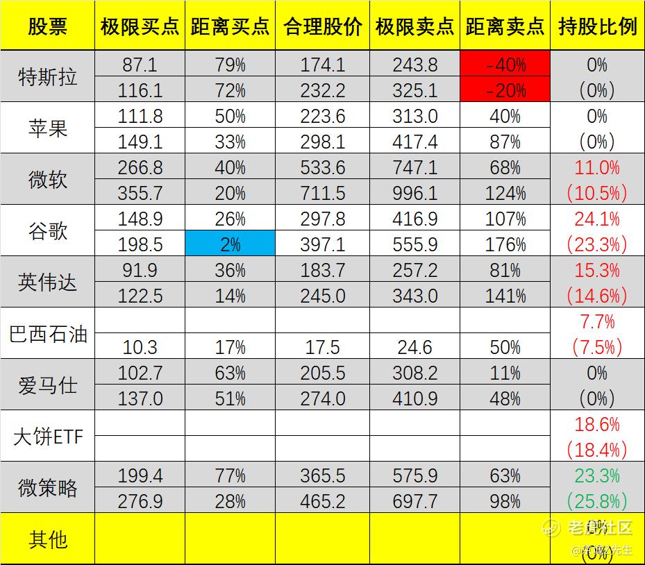 4、表格内相关数字,会随股价波动和我个人对公司的评估,不定期调整,请勿作为长期参考,切记巴菲特都经常判断失误,更何况我等凡人。